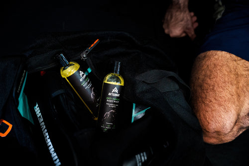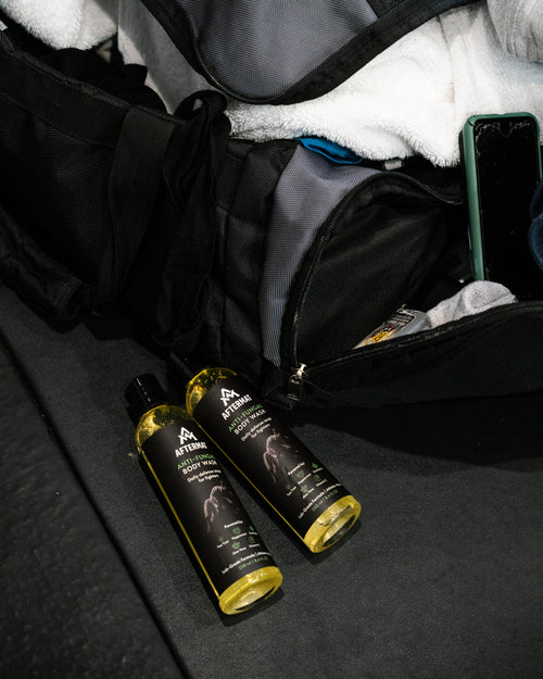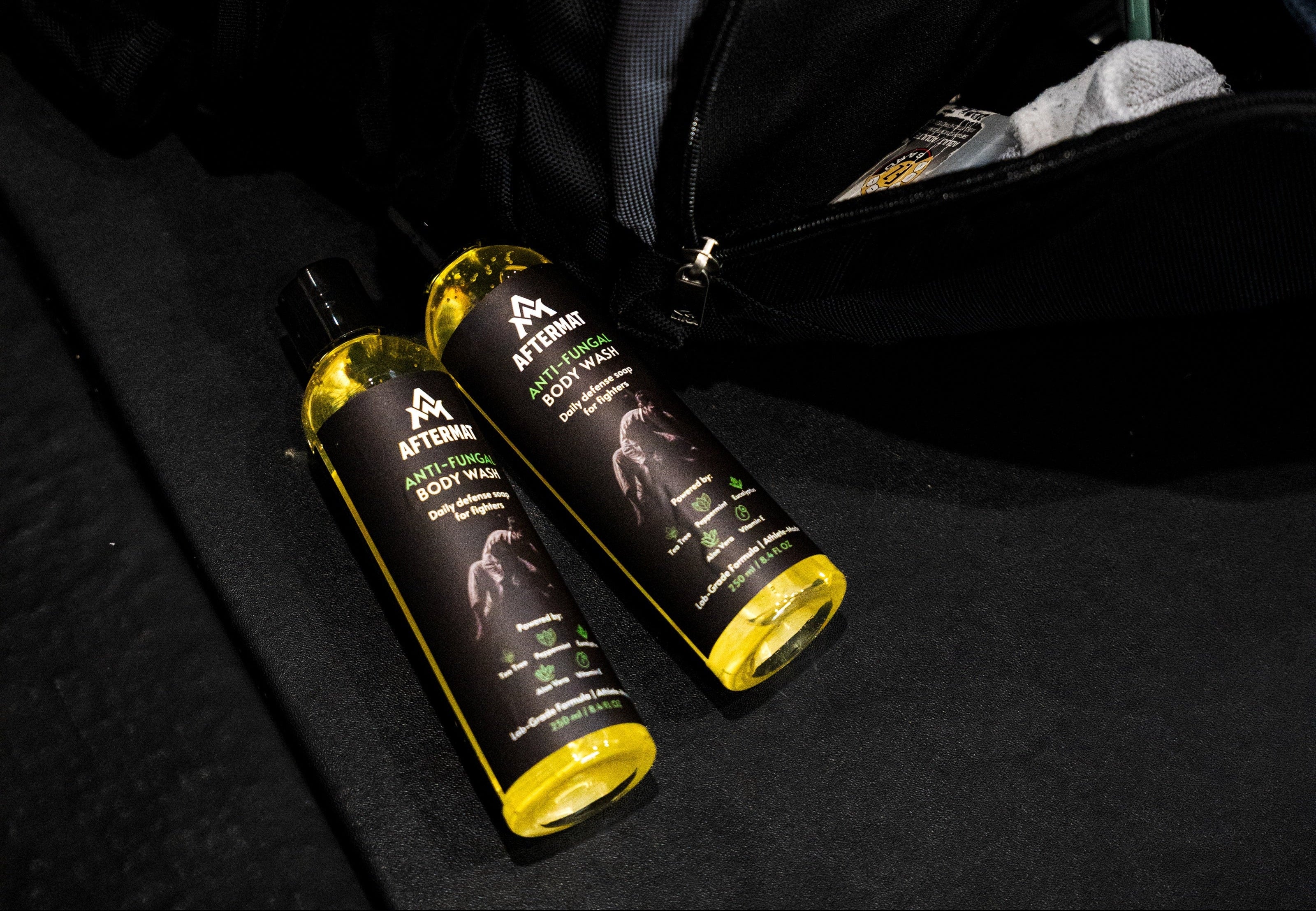 Use AfterMat Anitfungal Body wash immediately after training. Apply to wet skin, lather thoroughly, and rinse well. Focus on Area with high friction and sweat.